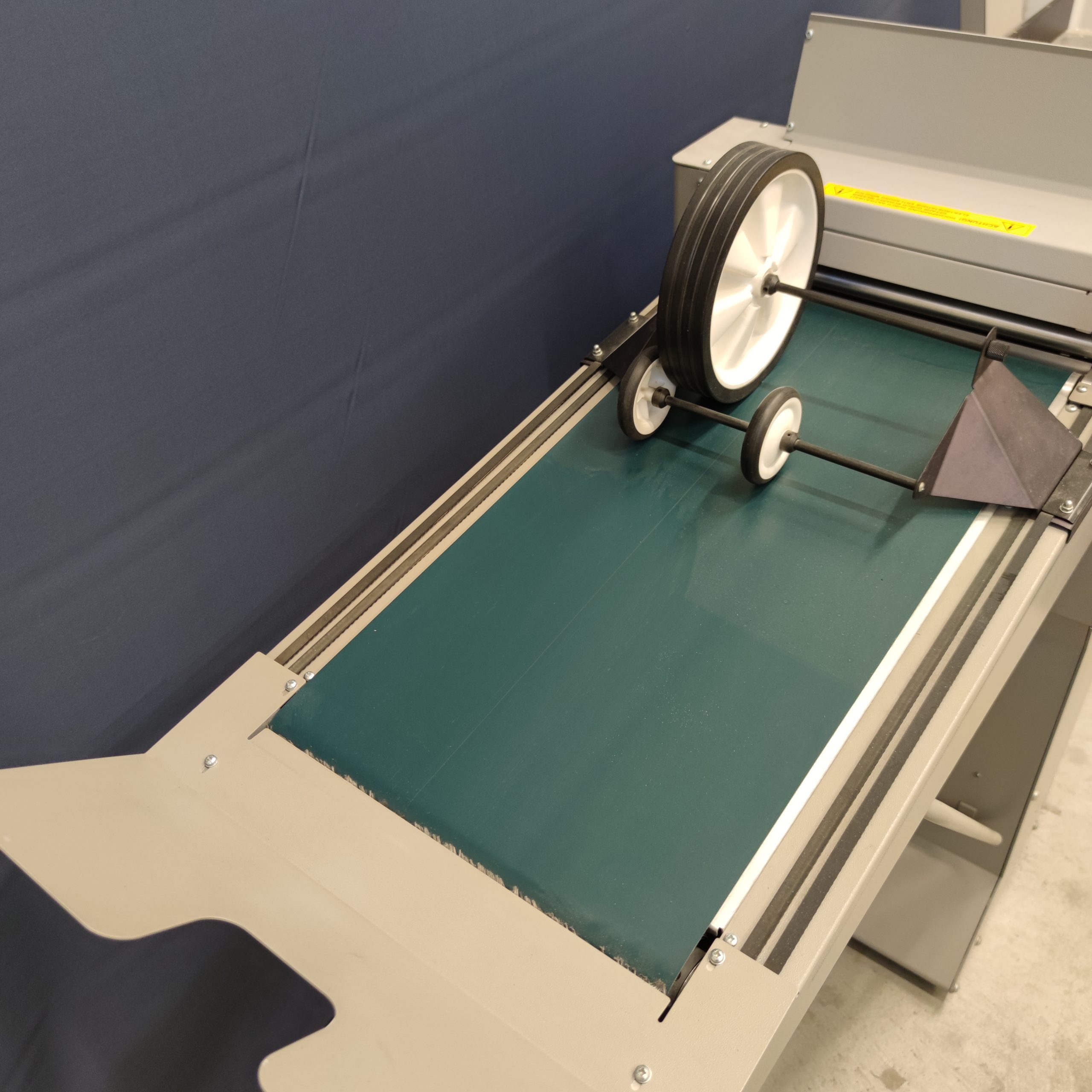 Nuuttaus ja taitto samalla läpiajolla. Morganan valmistama laite (kone on identtinen Morgana Digifoldin kanssa – ainoana erona Nagelin tarrat). Huollettu ja tarkastettu.