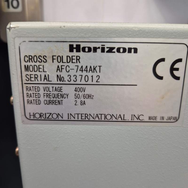 Horizon-taittokone sis. AFC-744 AKT Cross Folder & Delivery conveyor sekä PFU-74 Pallette Feeder Unit.